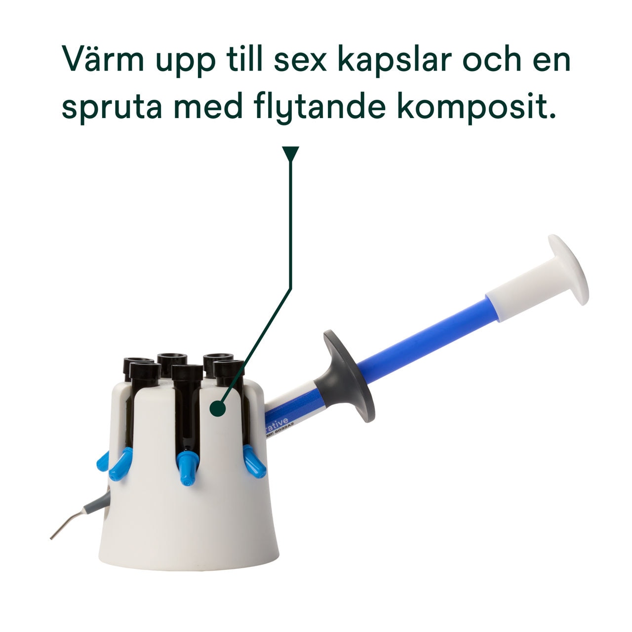 Värmekapacitet: Kan värma upp till sex kapslar och en spruta med flytande komposit, samtidigt.
