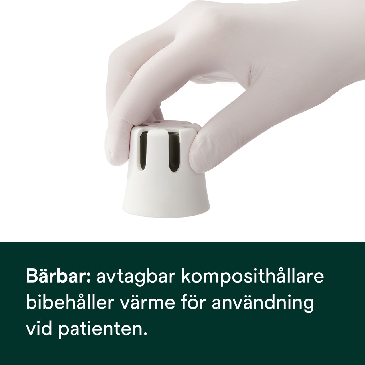 Portabel: Avtagbar komposithållare bibehåller värme och kan flyttas och användas vid patienten.