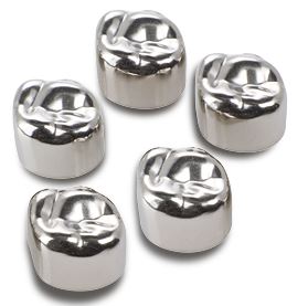 Förkonturerade temporära kronor i tenn-silver legering. Premolar underkäke vänster 2. 5 st.