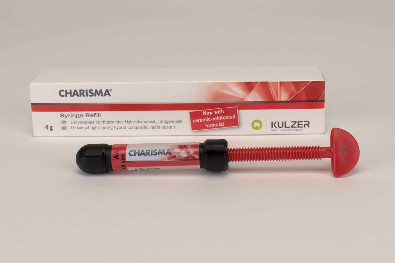 Universal finpartikel hybridkomposit för anteriora och posteriora fyllningar klass I-V. Mikroglasfiller ger god färgadaption. Fluoravgivande. Spruta,4 g, A4.