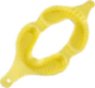 Appliceringssked för fluorgel, tillverkad av lätt, flexibel plast. Dubbel sked för över- och underkäken samtidigt. I en gul färg som kontrasterar med varje gel. Med fyllningsmärke.