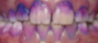 Tvåfärgssystem: gammal, strukturerad plack framstår som blå och nybildad plack som röd