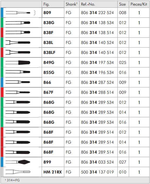 Uppsättningen består av 16 diamantborr i varierande geometrier samt en kronborttagare. Samtliga instrument är anpassade för kliniska hygienrutiner och tål rengöring i diskdesinfektor, ultraljudsbad samt desinfektion i borrbad.